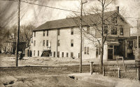 This "Photo By Waters" is of the building which is now known as Theatre Three and previously was Athena Hall at 412 Main Street. The sign over the door says, "The Port Jefferson Amusements. At the right edge are boards with posters stating, in part, "Last Week... A Yankee in Cuba." Parker's Pond is behind the building. |