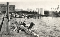 | 103. The tugboat Lucy from Boston Big | 104. A view along same wharf showing Placidia in front. Big | 44. The yacht Placidia before it went completely under. Big |