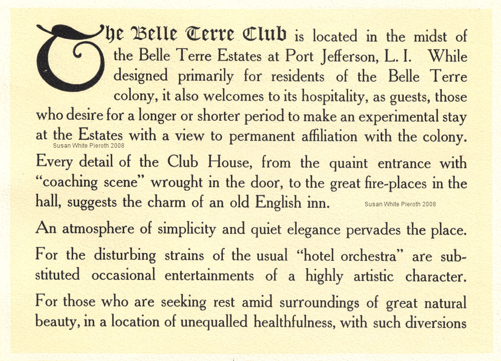 the midst of the Belle Terre Estates at Port Jefferson, L. I. While