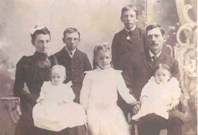 Ca: 1904 in Randolph, NE - Top row: Hattie, Clair, Earl W., and Herbert. Lower row: Sarah, Elsie and Julia.