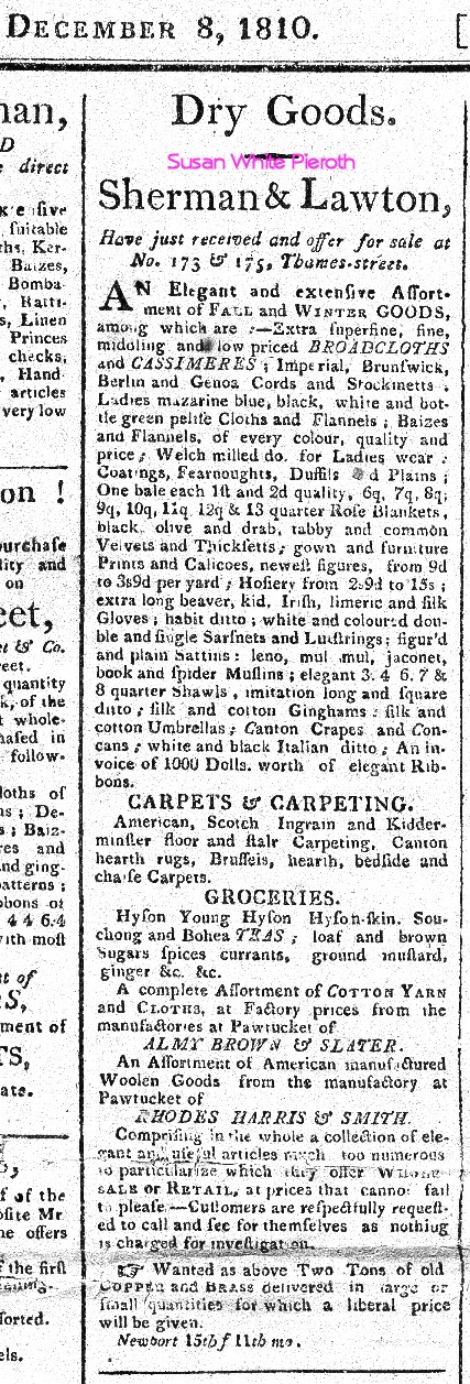 Shermans, Dry Goods Businesses of the Newport, by Susan Pieroth (p. 1)