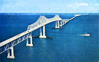 Left: the 15 mile long Sunshine Skyway bridge across Tampa Bay that was completed in 1954. The 22 million dollar bridge is 150 feet high over the channel. | Wikipedia has a good article on the old and new bridge. |