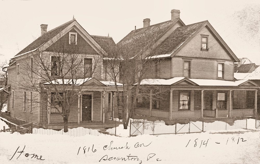 1816, 1814 and 1812 Church Avenue, Scranton. The numbers can be read on the two family house doors on the right in the original. There is no additional information, or postmark, on the back. |
