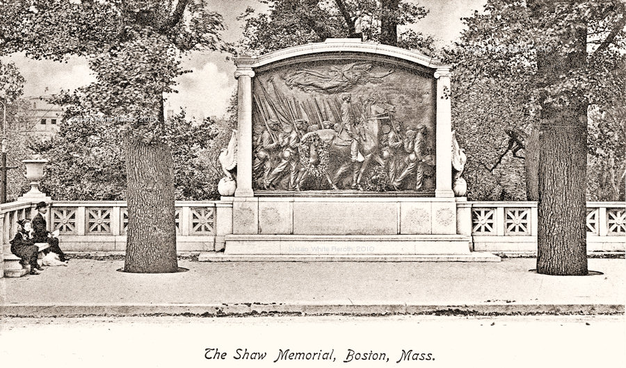 Left: Old Corner Book Store. Oldest Book Store in America. Copyright 1900Right: The Shaw Memorial. More information on this website. |