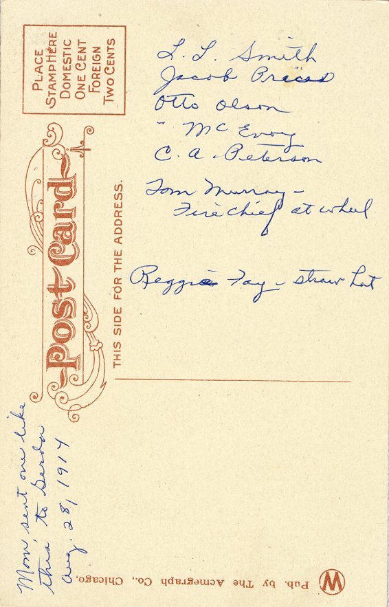 the back, "Mom sent one like this to Gerda Aug. 18, 1914," plus a list