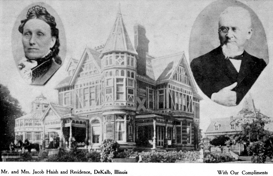 and Mrs. Jacob Haish and Residence." One of the barbed wire manufactures.