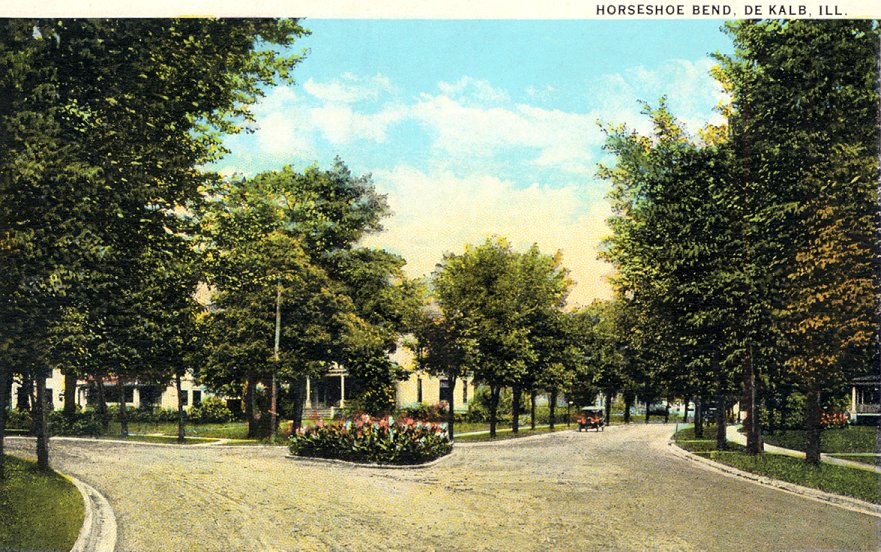 Bend, De Kalb, ILL." Published before WWII. The intersection of College