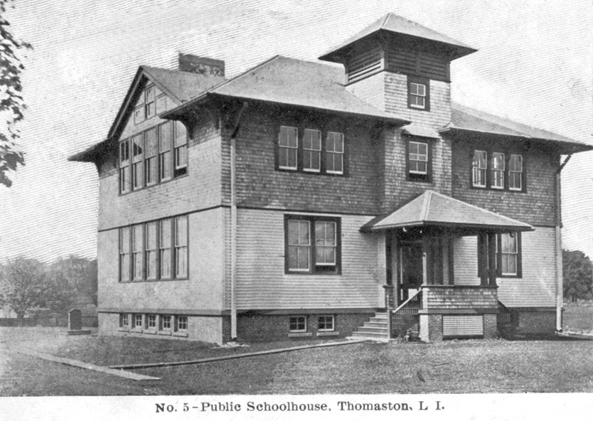 "No. 5 - Public Schoolhouse, Thomaston, L. I." It was built in 1905. Thomaston is a village of Great Neck above Lake Success. |