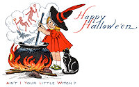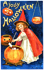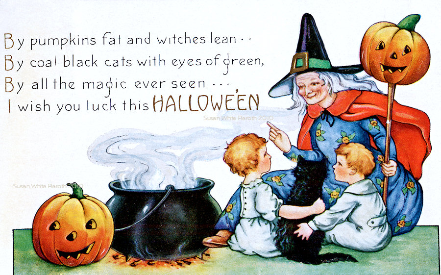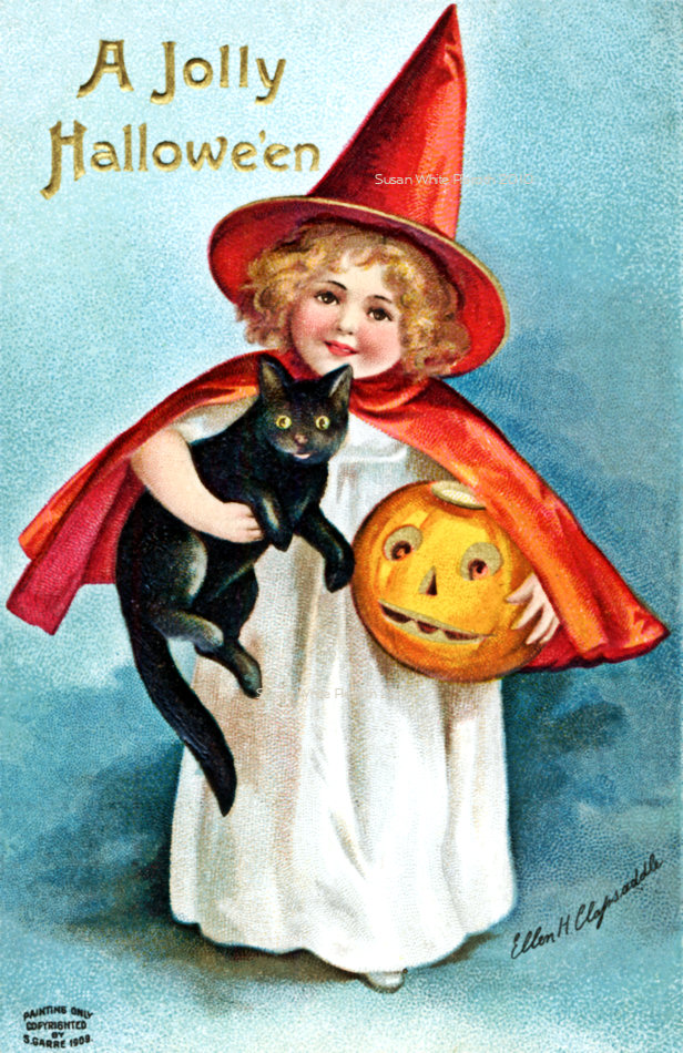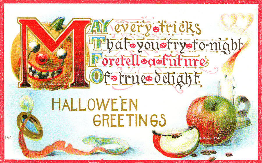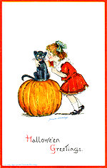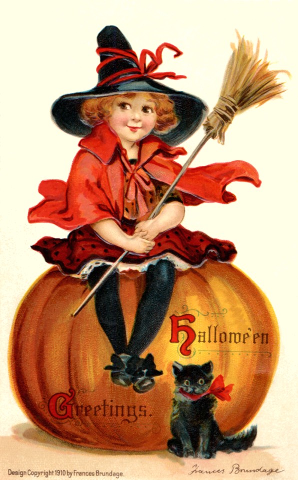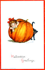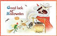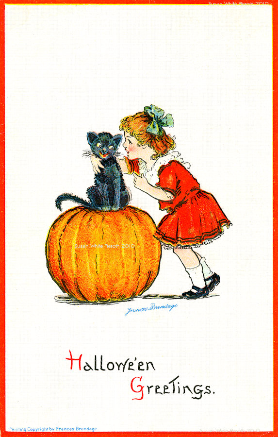 I wish you luck this Hallowe'en" Right: Embossed Hallowe'en Greetings by Frances Brundage