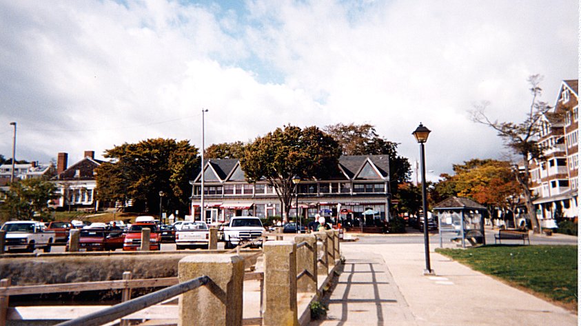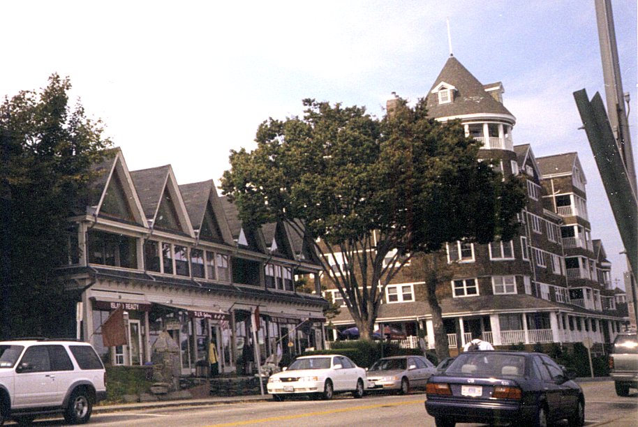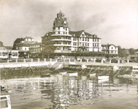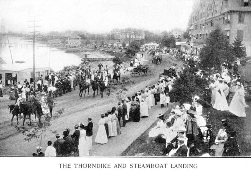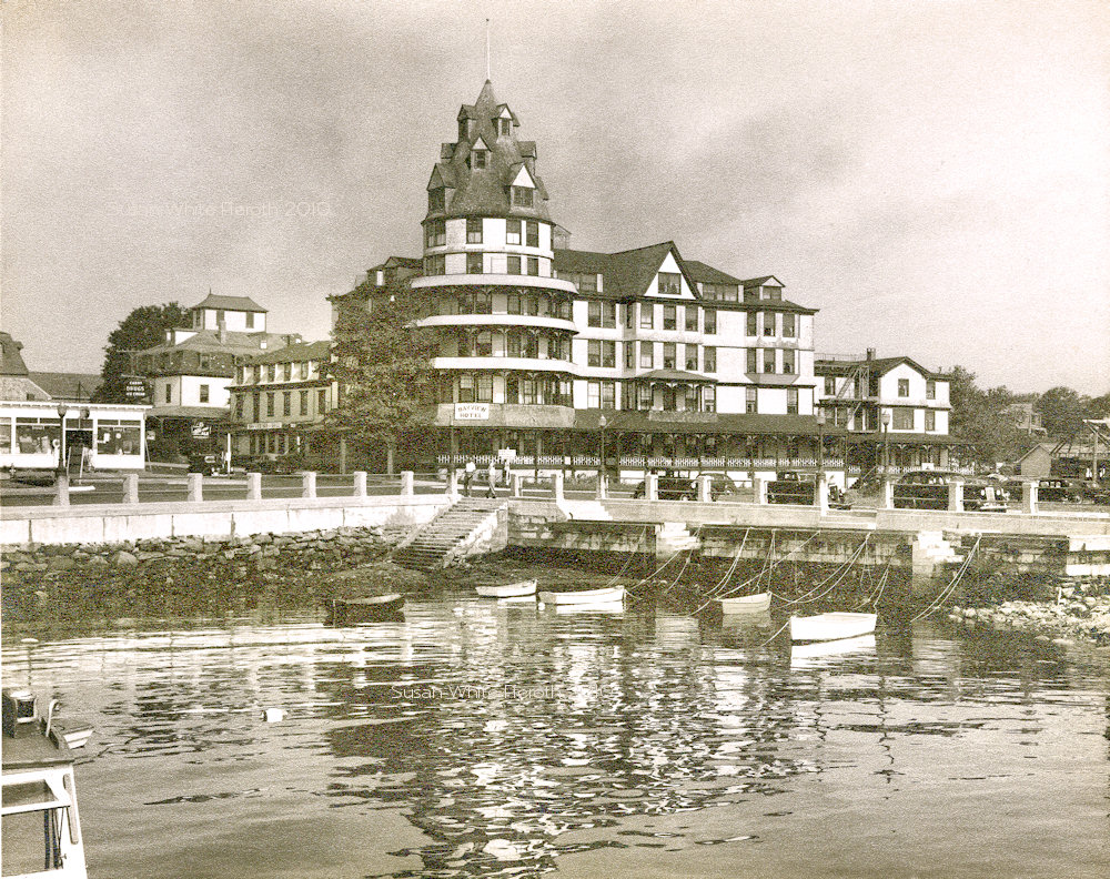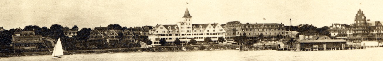 of the shoreline are (from the left), the "Three Sisters" and the Hotels Thorndike, Gardner, and Bay