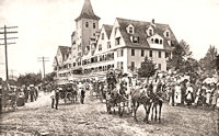 ![]() | Left: Thorndike, Gardner and Bay View.Right: The old Thorndike and the Gardner House. The Gardner House was built in 1883 between the Thorndike and the Bay View. It was torn down by the town about 1941. For a card of just the Gardner, click here. |