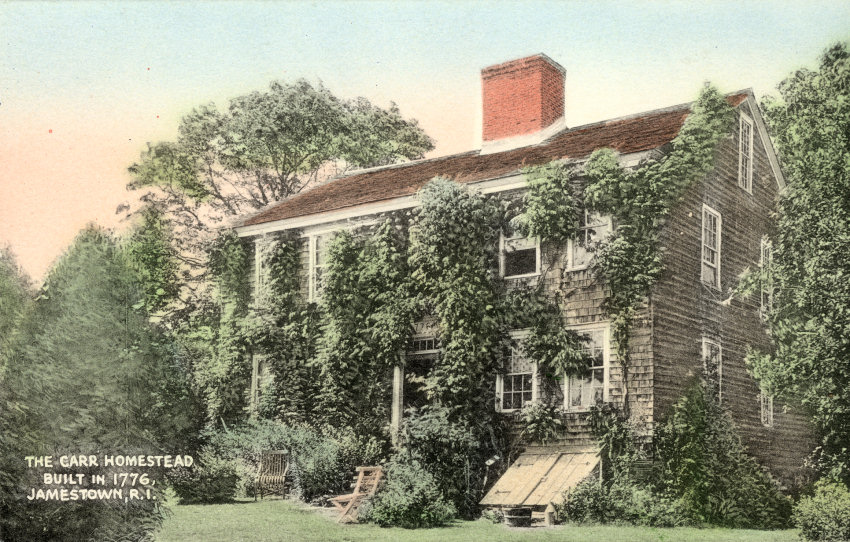 Jamestown, R. I." mailed in 1907. Right: "The Carr Homestead."