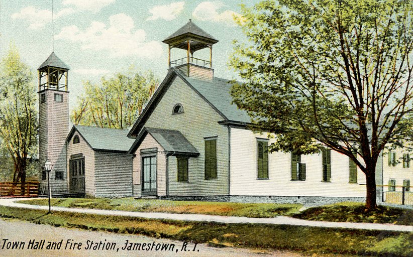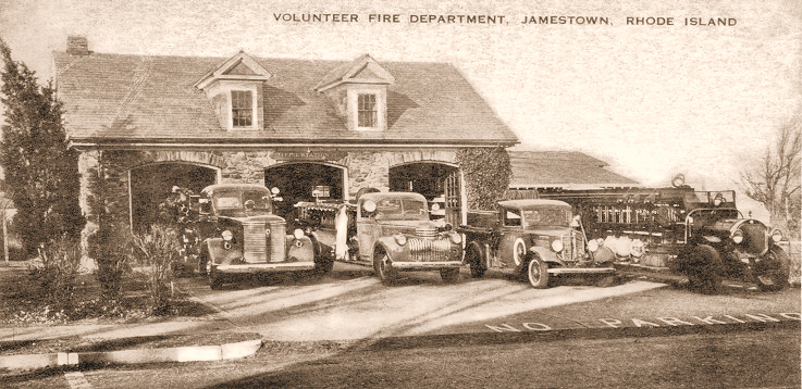 "Volunteer Fire Department, Jamestown, Rhode Island." The building is on Narragansett Avenue. No date. For more information on the Jamestown Fire Department, check their web site. |