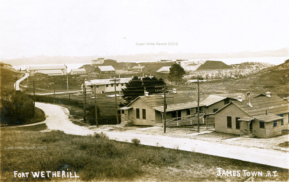 built in 1787 and in operation until the 1890's. It was abandoned for years, but has been restored. Printed about 1906.Right: Fort Wetherill - probably during World War I. |