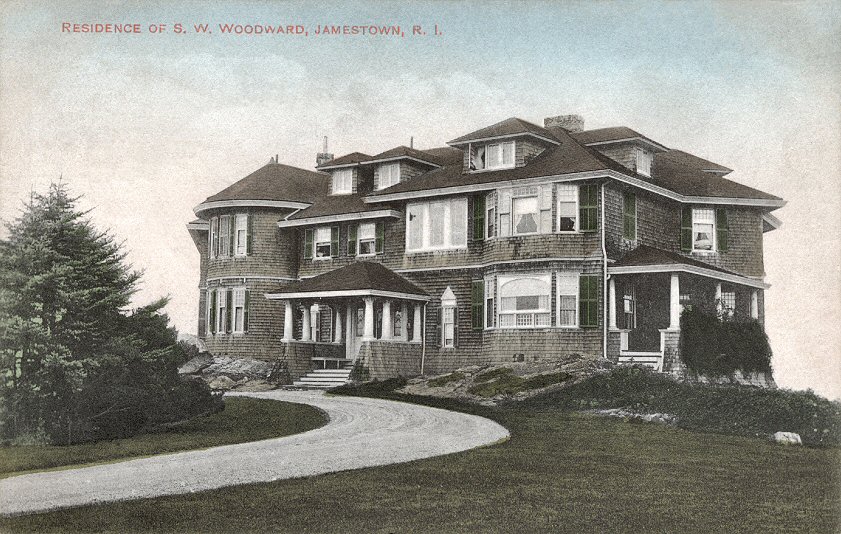 "Res. of Admiral Selfridge, Jamestown, R. I." Built in 1886, it was called The Barnacle. The house was torn down in the 1960's. |