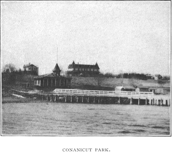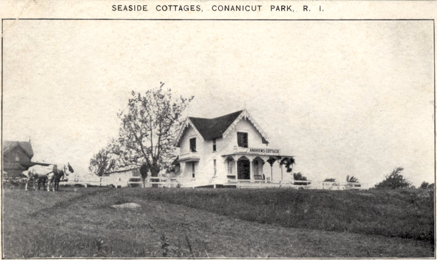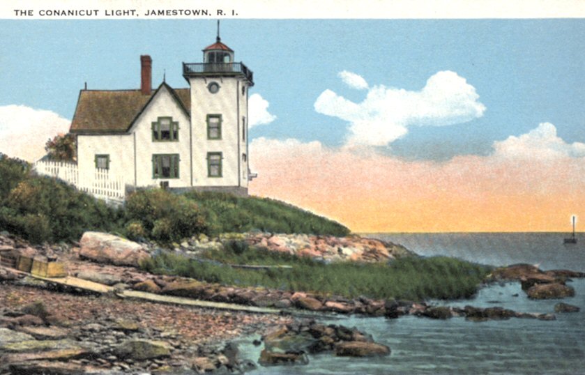 "The Conanicut Light, Jamestown, R. I." Also known as the North Point Light, it was built in 1886 at the north end of the island. The building is still there, but is now a private residence. It has not been used for navigation since 1933. |