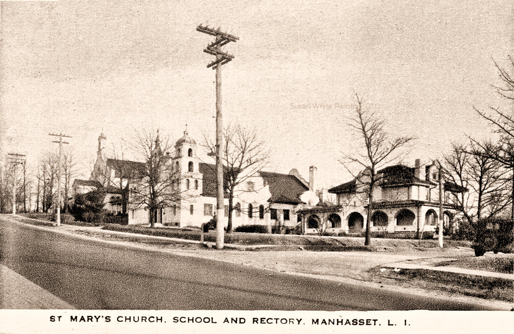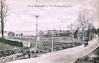 Park Avenue at the entrance to Munsey Park about 1932. The cross street sign says "Locust Place." The name was changed to Munsey Place in 1933. On the right behind the right pillar is a large sign with a picture of a house. Munsey Park was still being developed at this time, and that is apparently a sign advertising the latest model. See the history page of Village of the Munsey Park. |