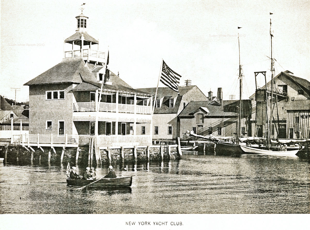![]() | Left: New York Yacht Club from an 1897 view book.Right: New York Yacht Club from a different 1897 view book. Another view book image of the same vintage, but from shore, is here. |