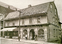 ![]() | East From Government Landing. The sign on the taller middle building is for Titus Furniture store.Right: View from Government Landing looking towards Thames Street (not a postcard). |