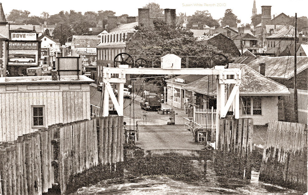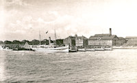 Left: "Along the waterfront looking south from Long Wharf."Right: An old photo taken from the ferry as it leaves Newport. |