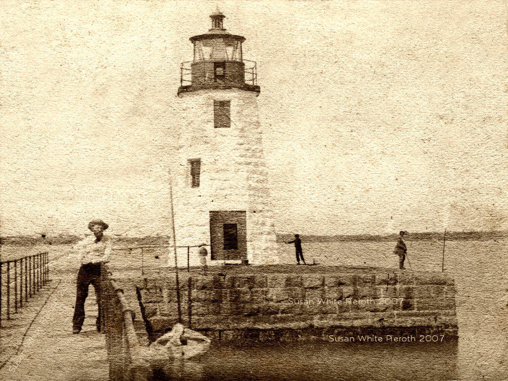 and right the Newport Breakwater Light (also known as Goat Island Light