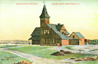 Left: Life Saving Station, Price's Neck.Right: Halidon Avenue with a view of Ida Lewis Light House in the distance. |
