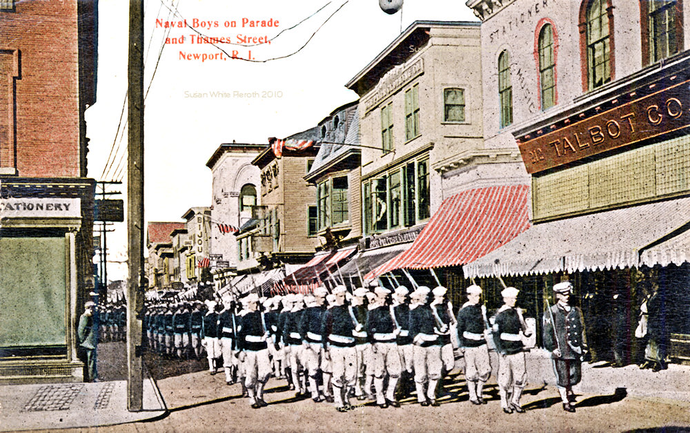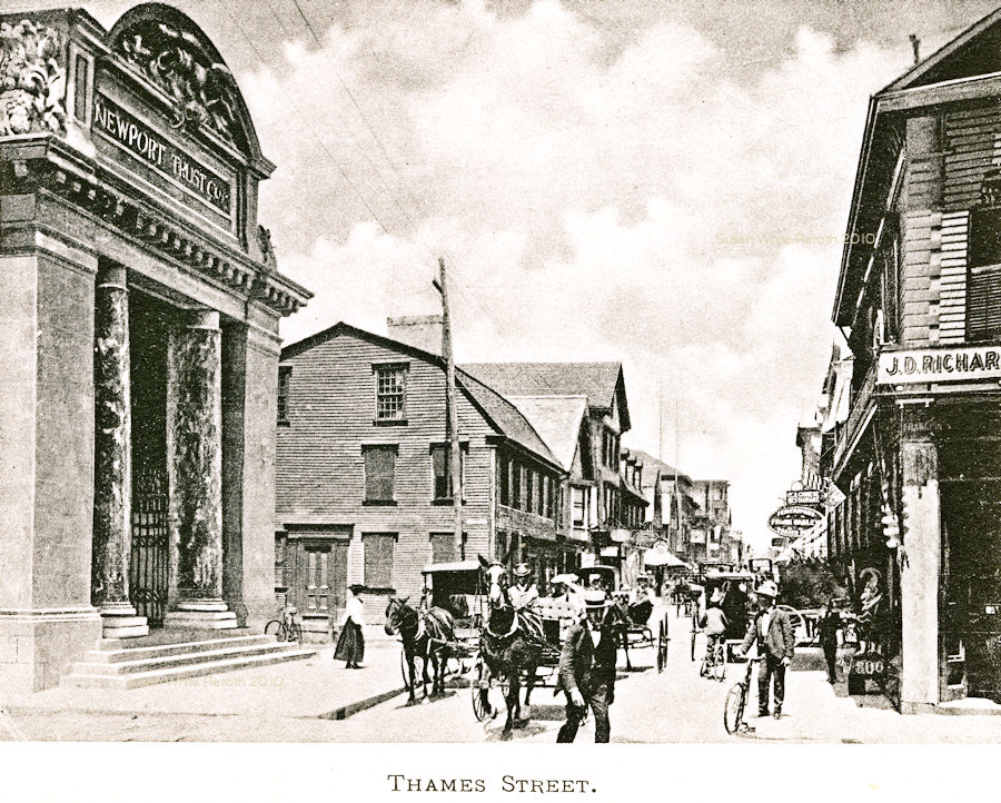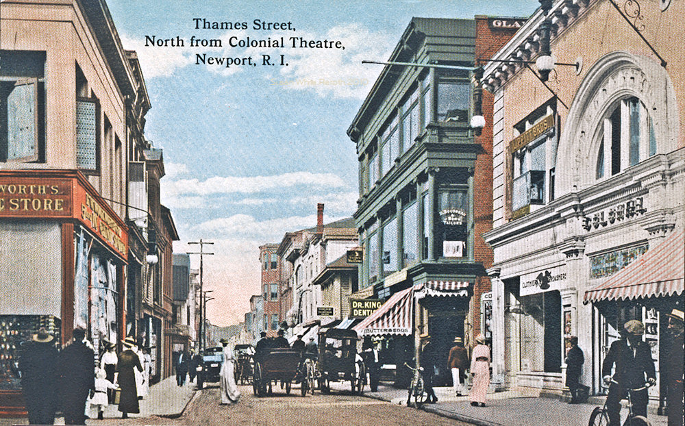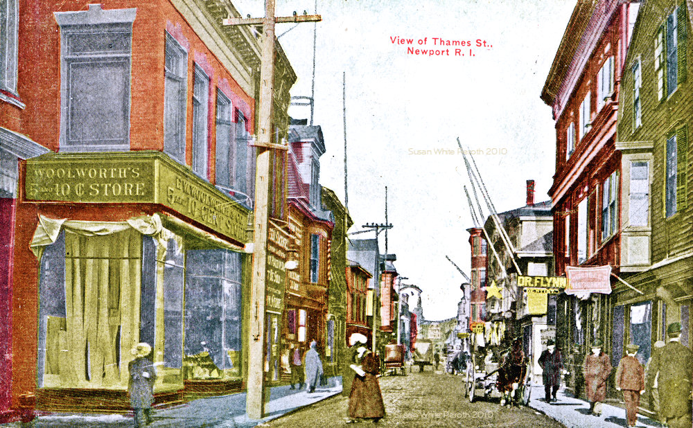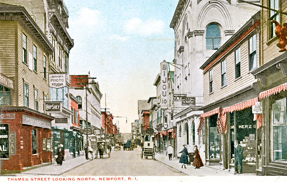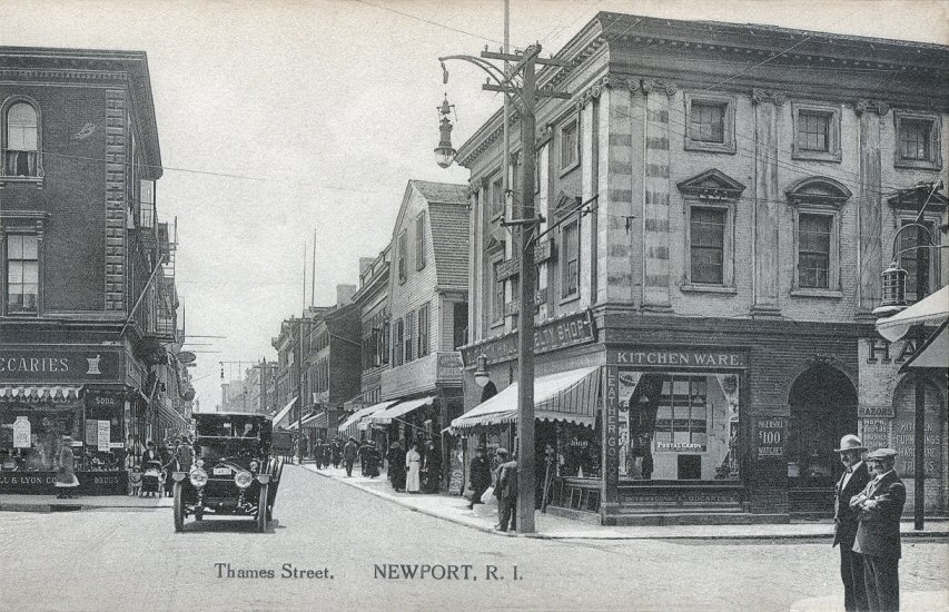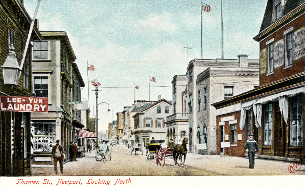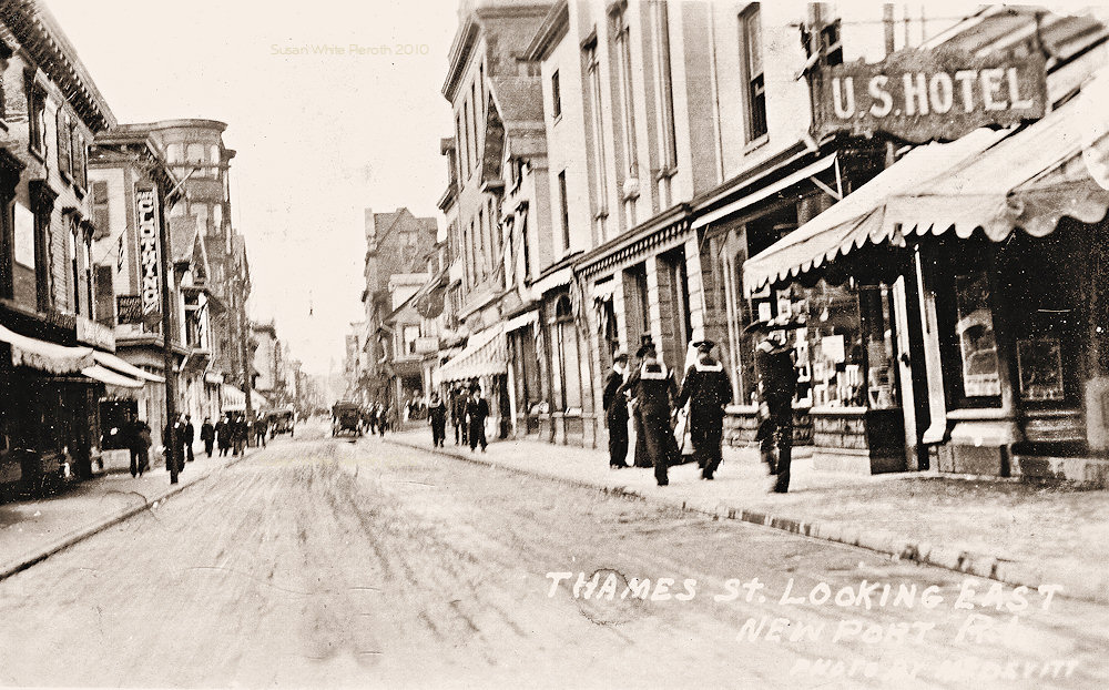 Left: Thames Street looking towards Washington Square, shows the Sherman