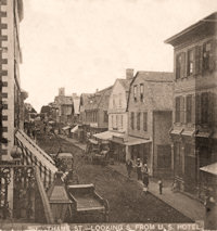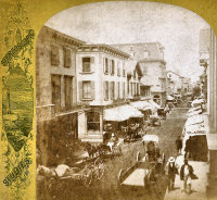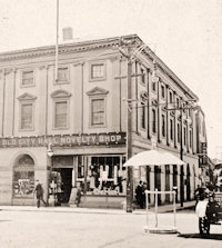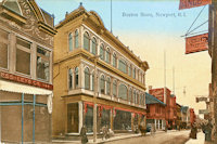 ![]() Far Left: "Old City Hall Novelty Shop" in the Brick Market.Left: an old stereo card of the State House (Brick Market). Right: Thames street with the Brick Market on the right. At one time the building next to that was an Atlantic & Pacific Tea Company store. Next to that is William Leys Dry Goods Company Century Store. Published by Daniel E. Sullivan, Old City Hall Shop. |