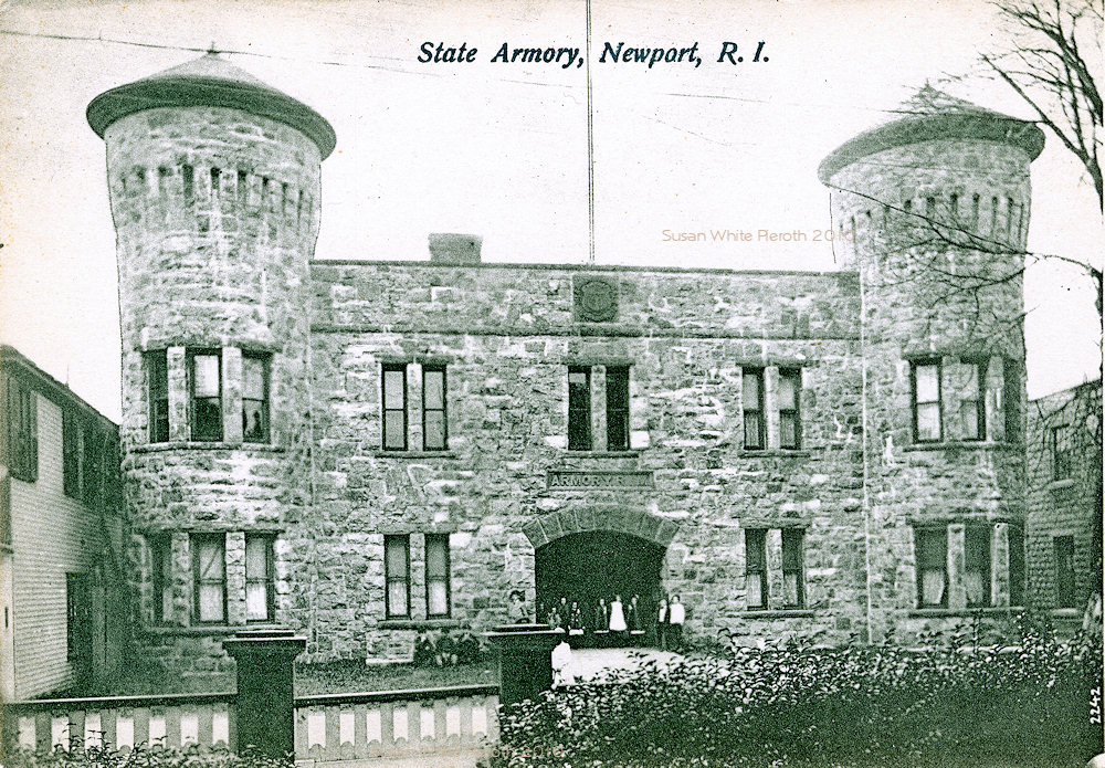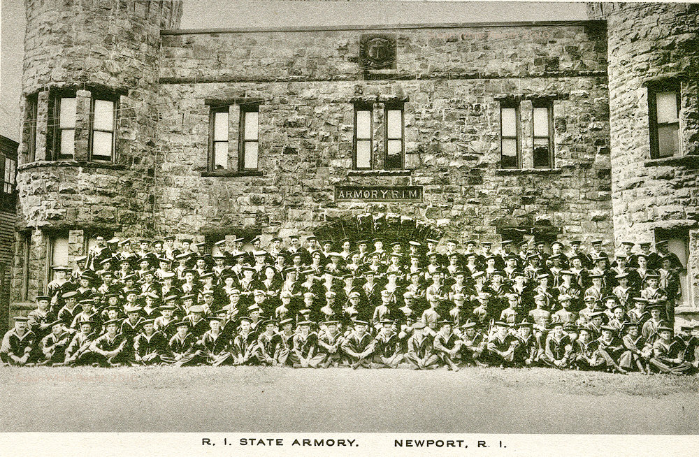 Armory on Thames Street - now an antiques cooperative.Right: A large group of sailors pose before the armory - no date. |