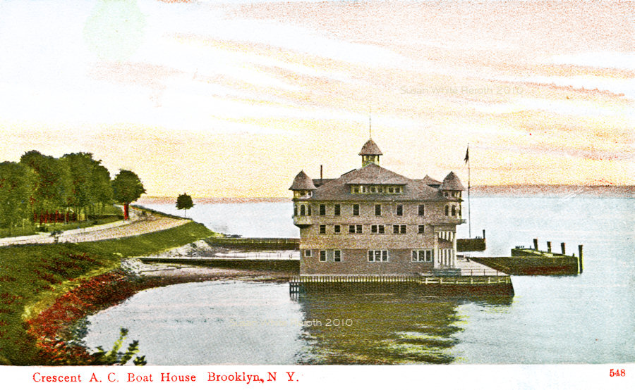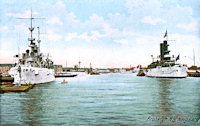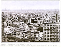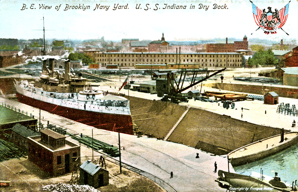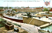Bird's Eye View of Brooklyn Navy Yard. U.S.S. Indiana in Dry Dock.Right: Crescent A. C. Boat House |