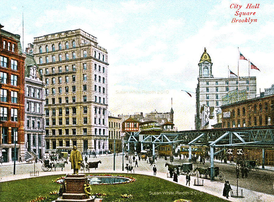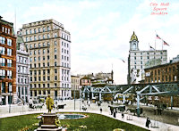 Hall SquareRight: City Hall Square, looking up Fulton Street |