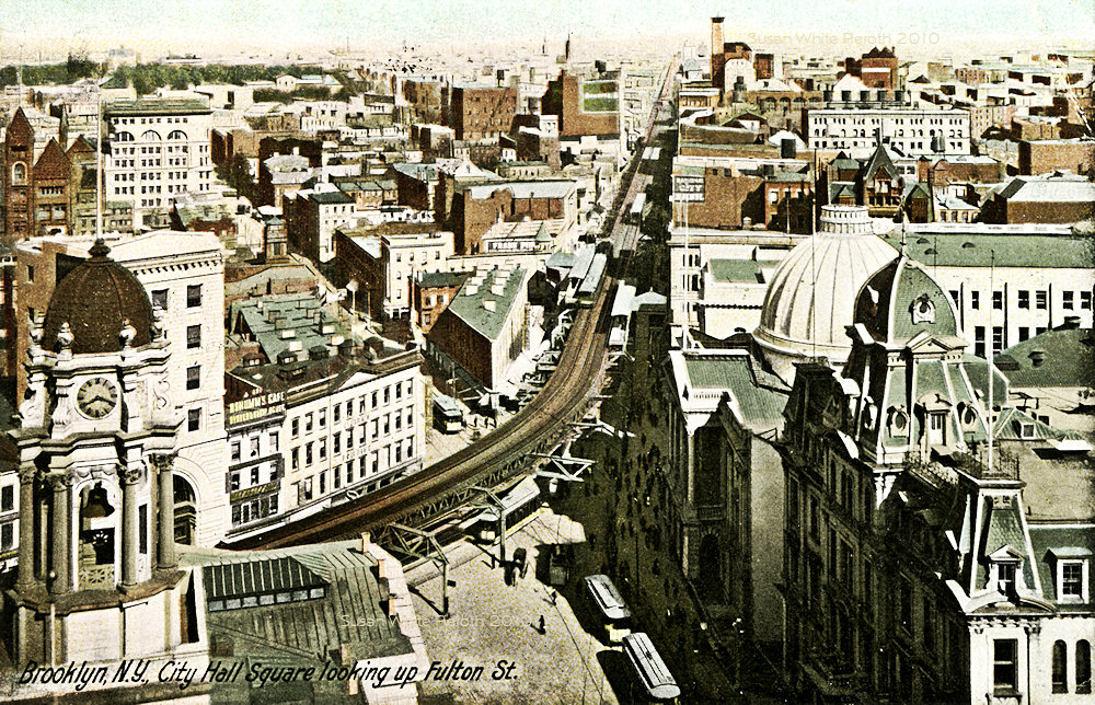 ![]() | ![]() Far Left: Head-Quarters of Fire DepartmentLeft: Main Building, Pratt Institute, Ryerson Street Right: Shopping district, Fulton Street |
