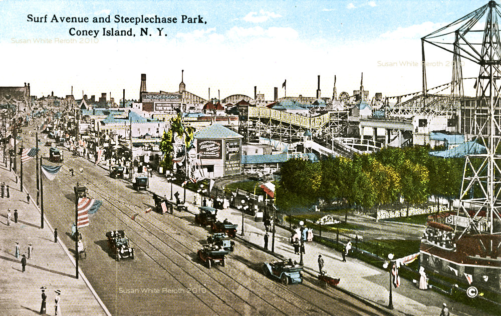 Ebbets Field, Brooklyn - Original home of the DodgersRight: Surf Avenue and Steeplechase Park, Coney Island |