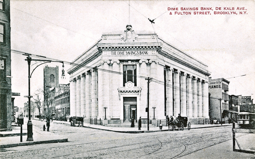 Left: Brooklyn Post OfficeLeft: Dime Bank, corner of DeKalb and Fulton Streets Right: Grant Square |