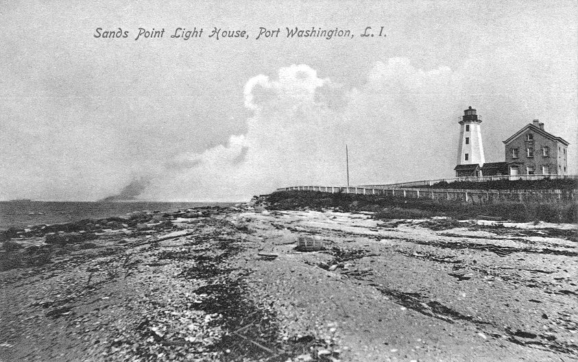 "Sands Point Light House, Port Washington" mailed in 1909. The 80' tower was built in 1809, and the house in 1868. The lighthouse is still there, but not in operation since 1924. For an enlargement of just the buildings, click here. |