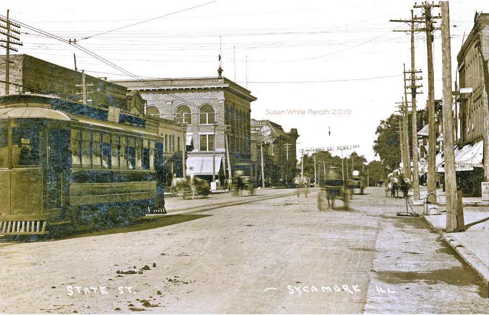 the very end. Right: Sycamore Universalist Church on the corner of California and State Streets. |