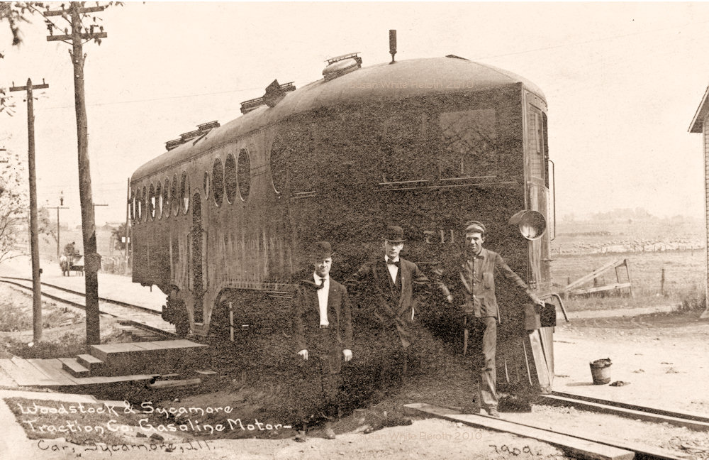 Left: Woodstock & Sycamore Traction Co. Gasoline Motor-Car, Sycamore. |
