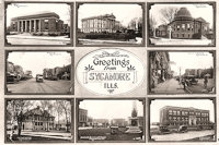 Right: "De Kalb County Court House - Sycamore, Illinois." The building, constructed in 1903/4, is on the north side of State Street. This looks almost exactly the same today. For more history of the courthouse buildings, see this site and this site. |