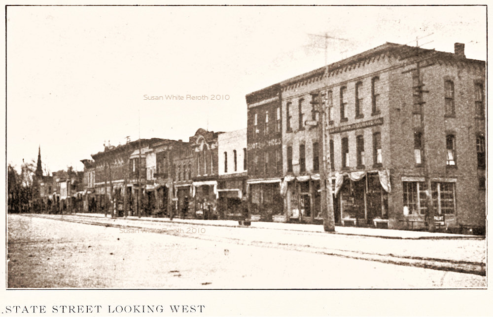 State Street West from Maple.Right: an earlier view (before the light posts) from about the same spot. |