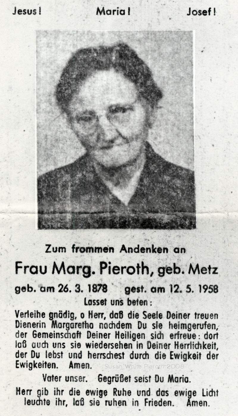 1881, and died October 06, 1939 in Rhein, Germany. He married MARGARETA METZ. She was born March 26, 1878, and died