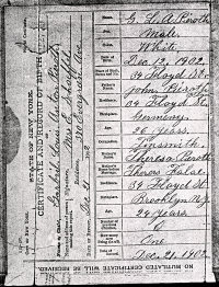 NY. He married (1) THERESA FALKE. She was born 1878 in Brooklyn, NY and