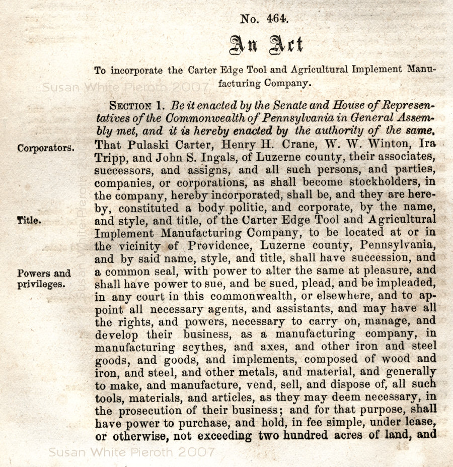 To incorporate the Carter Edge Tool and Agricultural