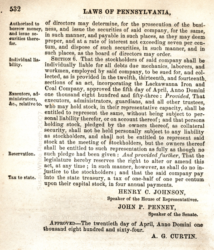 the Lackawanna Iron and Coal Company, approved the fifth day of April,