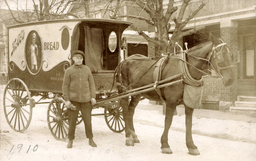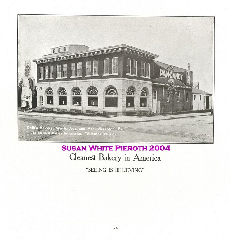 | Richards & Wirth, 326 Lackawanna Ave. Scranton. A building to the right of this view was also destroyed. | T. C. Nissley, 429 Wyoming Avenue. A dry goods or fancy goods store. | Kolb's Bread wagon dated 1910. A 1912 advertisement in the Scranton Board of Trade publication shows the baker at the intersection of Washington Ave. and Ash in Scranton. |