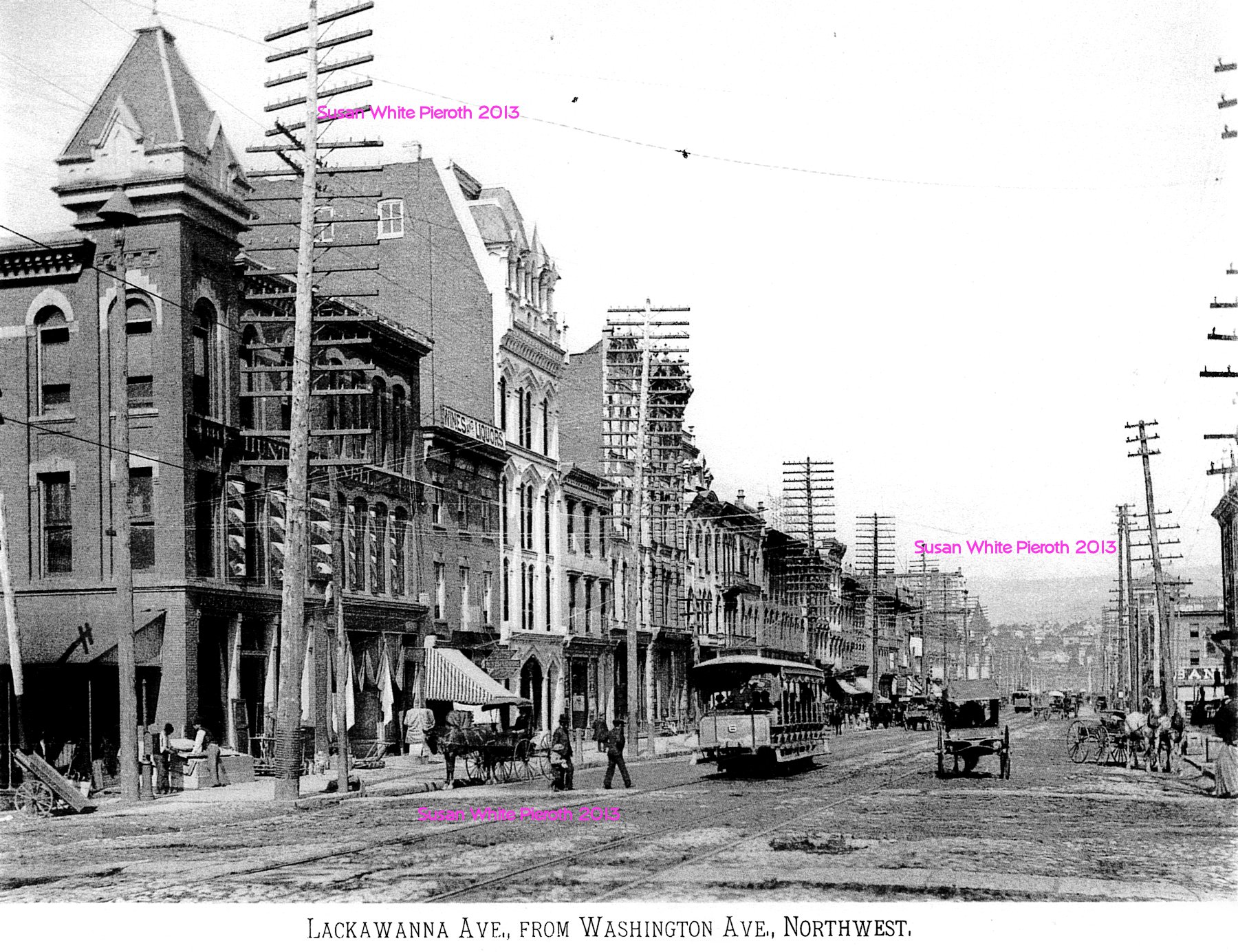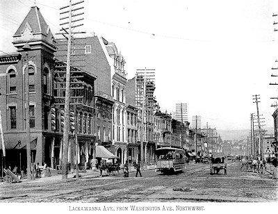 Left: Lackawanna Avenue from Washington Avenue, Northwest. The back of this photo is marked "1889". | |