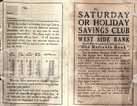 Saturday or Holiday Savings Club - West Side Bank. North Main Avenue and Jackson Street "Old Reliable Bank." Savings in the club were paid on demand, including 3% per annum, on December 19, 1914. This book was unused. |