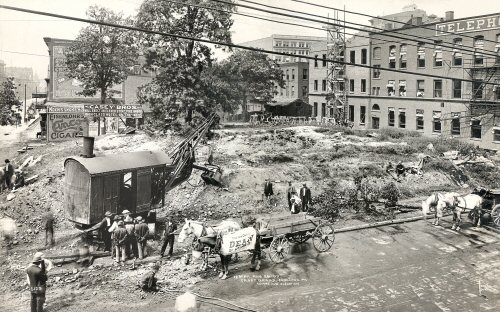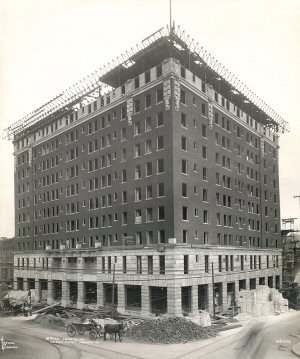 The incident was unmarked by any ceremony, and went off in a businesslike manner. When the proprietors of what is to be the city's finest hotel were through, they went off to their business while a gang boss put a crowd of men and a steam shovel to digging the excavations for the new hotel.