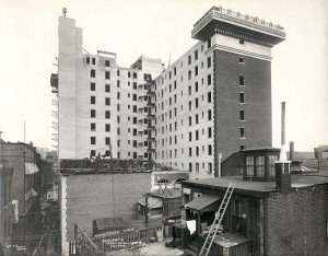 The entire equipment was made in accordance with specifications drawn particularly for the hotel. There are ice water lines running to each floor, the water being cooled by the brine system There is also one public ice water fountain on each floor.