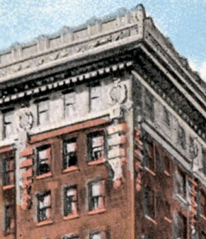 Off towards the north end of the building is a banquet room that will seat four hundred, which can also be used as a ball room or convention hall. It is 46x80 and palatial. Five electroliers throw a glow over the room that makes it bright as day and add to the grandeur of the truly magnificent interior decorations. There are also guest rooms on this floor behind the parlors and facing the street, but the whole arrangement aside from this is such that the entire floor is adapted to social functions of any kind.