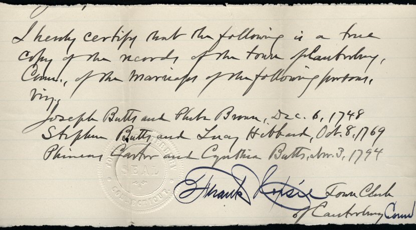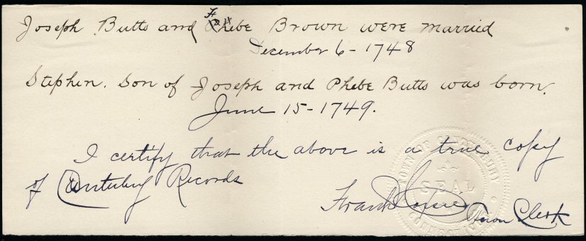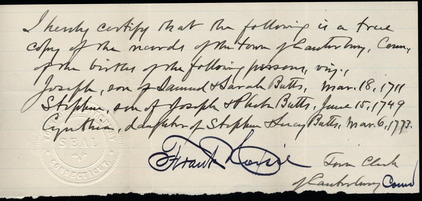 of Canterbury, Connecticut: Joseph Butts and Phebe (strange correction